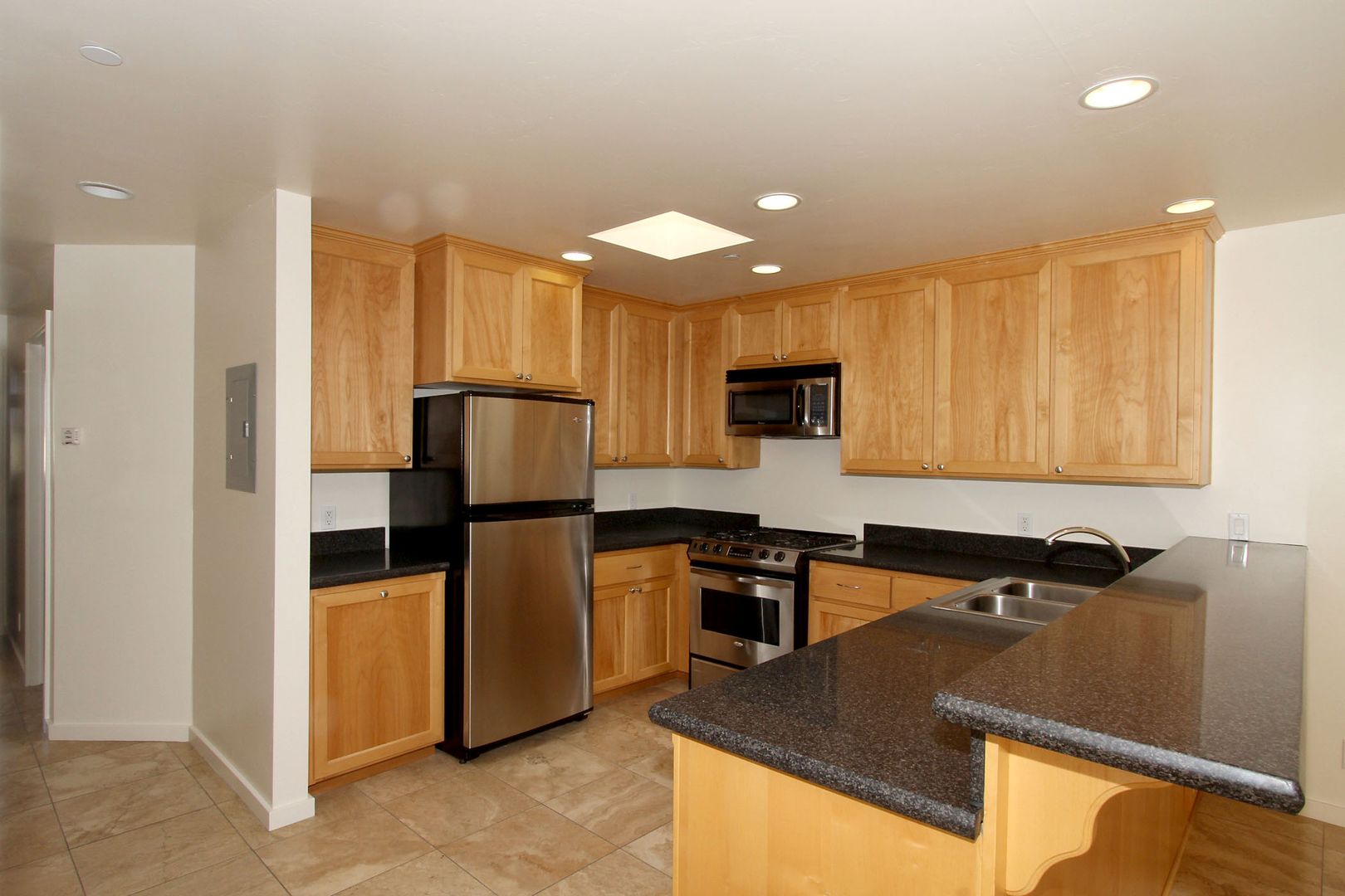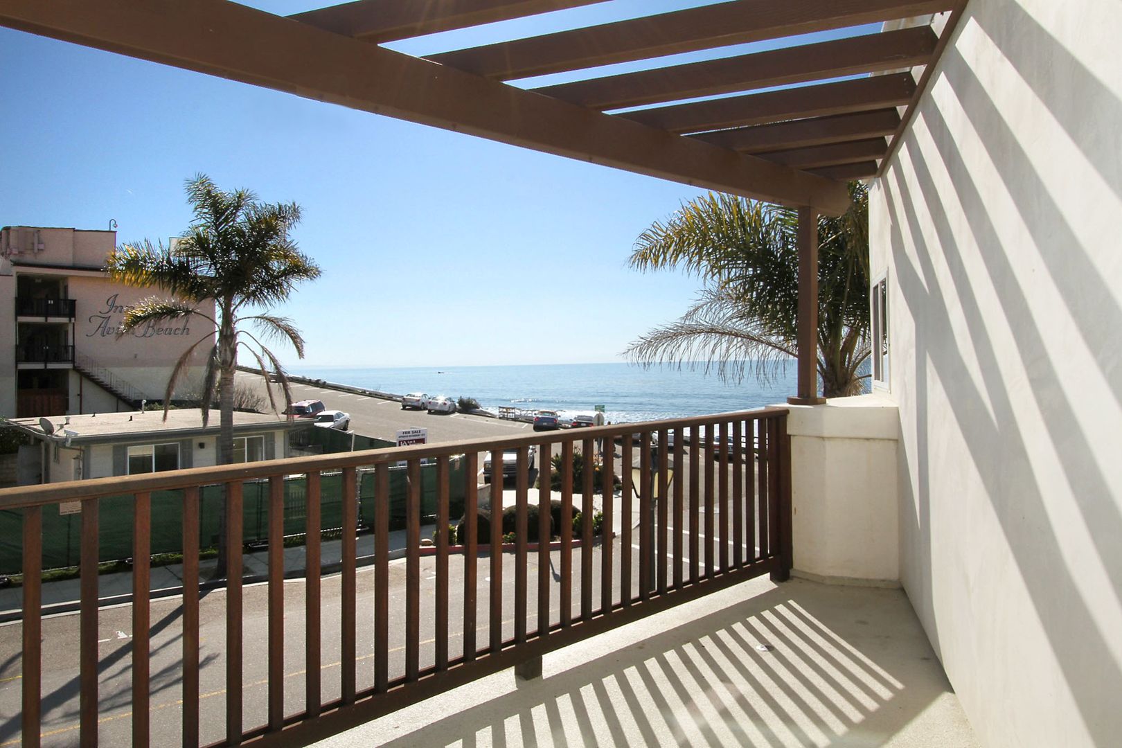 Ocean front apartment building in Avila Beach on Front Street. Upstairs in a building next to the ocean with small ocean view. Granite counter-tops and custom cabinets accent this one of a kind property.